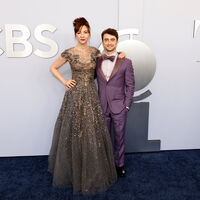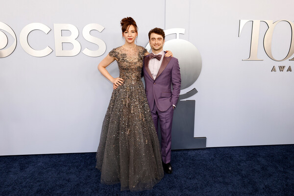 34-летний Дэниел Рэдклифф и 39-летняя Эрин Дарк посетили 77-ю церемонию вручения премии «Тони», которая прошла 16 июня в Нью-Йорке. На красной дорожке актер появился в рубашке, фиолетовом брючном костюме и черных туфлях. Завершением образа стала лиловая бабочка. Эрин Дарк позировала перед фотографами в макси-платье, украшенном пайетками. Визажисты сделали ей макияж с черными стрелками и красной помадой, а стилисты по волосам — укладку.