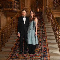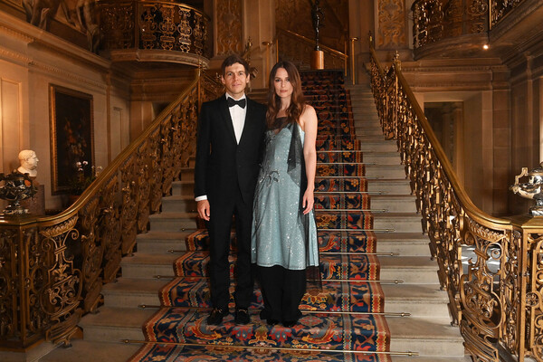 Пара появилась на открытии выставки «Воображаемые беседы: коллекция ERDEM, вдохновленная герцогиней Деборой» в Великобритании. Для мероприятия Кира Найтли предпочла голубое платье-комбинацию с черной сеткой, которое дополнили брюки и кожаные балетки на низком каблуке. Ей также сделали укладку с локонами и вечерний макияж с угольно-черными стрелками. Перед камерами она позировала вместе с мужем Джеймсом Райтоном.