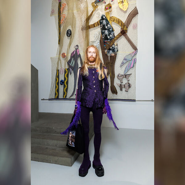 41-летний Поляков позировал в фиолетовых колготках и жакете с перьями. Волосы он распустил и сделал легкие локоны. Образ завершили ботинки на высокой платформе и сумка-шоппер с принтом