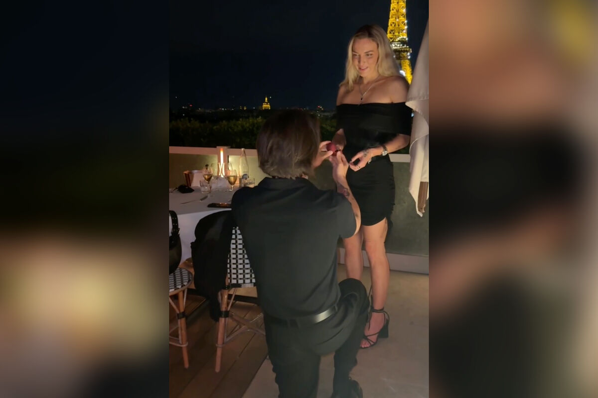 После свидания молодые люди отправились на фотосессию к Эйфелевой башне. Снимки Гусарова опубликовала в Instagram (владелец компания Meta признана в России экстремистской и запрещена), подписав серию: «Я невеста». На фотографиях звезды были одеты во все черное. Исполнительница красовалась в мини-платье с открытыми плечами и босоножками на каблуках с завязками. Ее образ дополняли подаренное избранником кольцо с бриллиантом и букет белых роз. Борисов, в свою очередь, был одет в косуху и прямые укороченные брюки.
