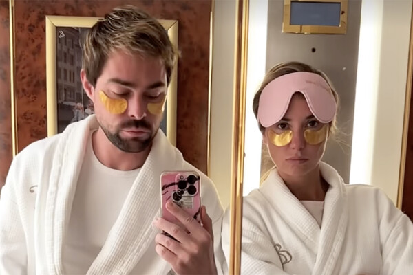 Для выхода на публику Агата Муцениеце и Иван Чуйков предпочли махровые белые халаты и патчи под глазами. В таких образах они решили пойти в ресторан на завтрак, но их не пустили. Пара успела сделать фото в зеркале. Актриса заявила, что это была идея Чуйкова выйти из номеров в «домашнем».