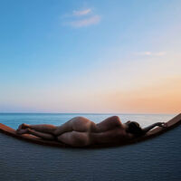 Перед камерой Варвара Шмыкова позировала полностью обнаженной. Съемка прошла на фоне моря, повернувшись к камере спиной. Волосы она собрала в пучок и надела золотые серьги. Известно, что актриса уже несколько недель отдыхает на юге Италии.