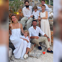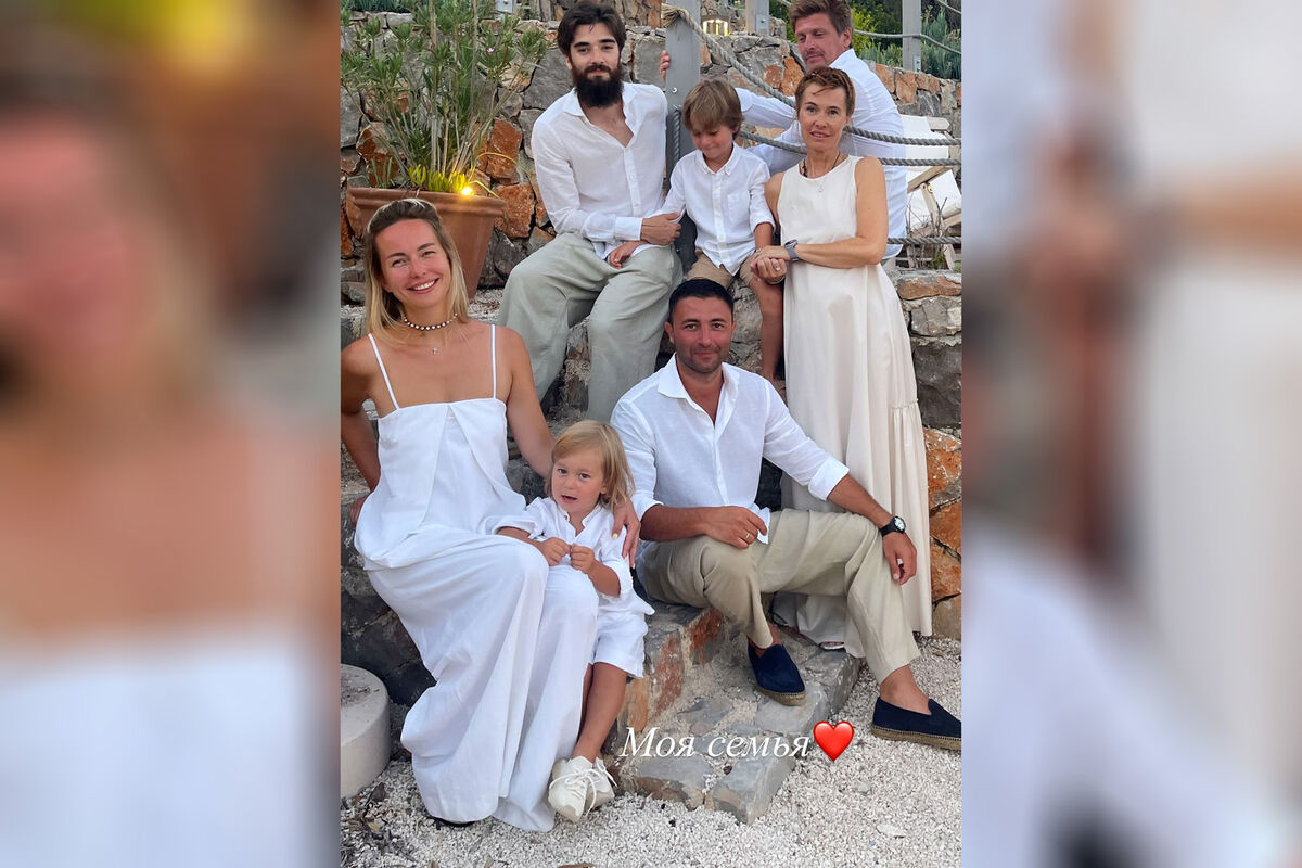 Оксана Робски вместе с мужем и сыном позировала на отдыхе в Греции. Семья собралась за одним столом с видом на море. Вся компания предпочла для вечера белые наряды.