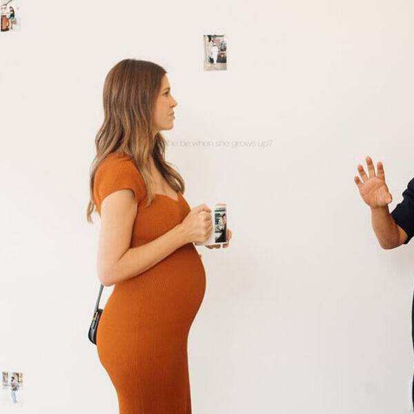 Фотографии были сделаны на выставке художника Кена Лама в галерее Studio 105. Дарья Жукова позировала в оранжевом облегающем платье, которое подчеркивало ее округлившийся живот. Волосы она распустила и сделали легкие локоны.