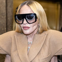 66-летняя Мадонна выбрала для показа бежевое платье-жакет с подплечниками и рукавами-фонариками. Образ дополнили кожаные ботфорты и очки. Однако внимание поклонников привлекли руки певицы. По их мнению, они слишком худые.