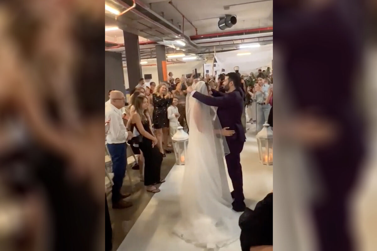 1 октября около 19:30 по местному времени Иран начал ракетную атаку на Израиль, как раз в этот момент Михаль и Идан готовились к хупе — традиционной еврейской церемонии бракосочетания. Раввин только начал обряд, когда в городе раздались первые сирены, предупреждающие об опасности и необходимости укрыться в бомбоубежище. Согласно еврейским традициям, хупу отменять нельзя, поэтому жених, невеста, раввин и 400 гостей вынуждены были срочно спуститься на подземную стоянку зала торжеств, которая является убежищем.