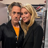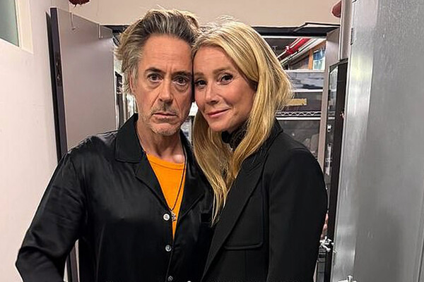 59-летний Роберт Дауни-младший был запечатлен вместе с актрисой Гвинет Пэлтроу, с которой они снялись в «Железном человеке». Знаменитости позировали в образах черного цвета.