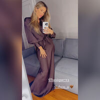Кети Топурия позировала в коричневом платье из струящейся ткани с глубоким декольте. Волосы она распустила и сделала нюдовый макияж с розовой помадой.