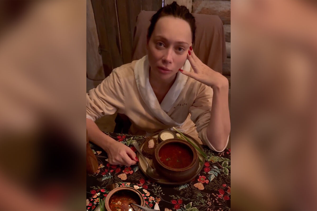 37-летняя Настасья Самбурская была запечатлена в халате в банном комплексе. Актриса позировала с собранными в пучок волосами и без косметики. Звезда сидела за столом, где стояла тарелка борща.