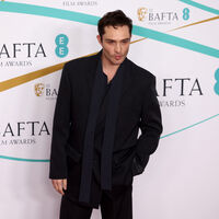 На новых фото актриса позировала в облегающем белом платье-бюстье с разрезом на бедре. Наряд подчеркнул округлившийся живот Джексон. Ей также сделали укладку с локонами и нюдовый макияж с розовой помадой. Актер был одет в белую футболку и черные брюки.