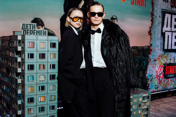 Слава Копейкин выбрал для светского мероприятия черный брючный костюм, классическую белую рубашку, бабочку, туфли и солнцезащитные очки. Завершением образа актера стала черная длинная шуба. Артисту также сделали гладкую укладку. Яна Енжаева позировала перед фотографами в похожем наряде. Девушка надела белую рубашку с галстуком, брюки, пиджак и очки с желтыми линзами.