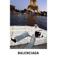 22-летний Ромео Бекхэм был запечатлен в молочном свитере на молнии, белой футболке, широких голубых выцветших джинсах и черных носках. Звездный наследник позировал с мокрой челкой-штрихкодом, сидя на диване на фоне Эйфелевой башни в Париже. Автором съемки выступил немецкий фотограф Юрген Теллер.