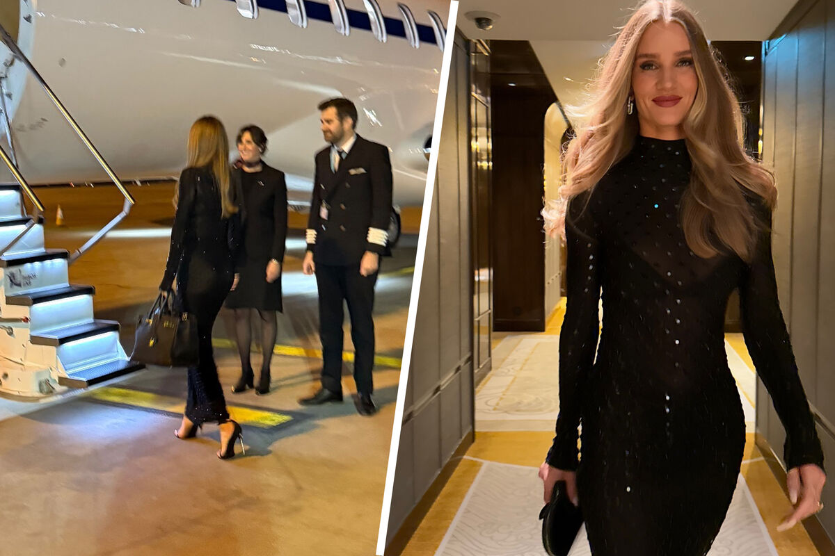 Роузи Хантингтон-Уайтли и Джейсон Стетхэм побывали на боксерском поединке в Саудовской Аравии. Модель выбрала для мероприятия черное облегающее полупрозрачное платье-миди, которое было украшено кристаллами. Манекенщица добавила к нему босоножки на каблуках. Знаменитость уложила волосы в локоны и сделала макияж с розовой помадой и блестящими тенями.