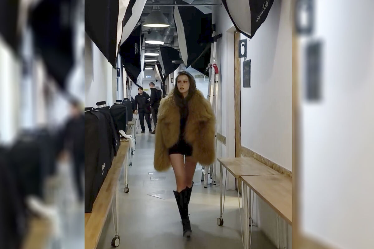 15-летняя Анна Пересильд позировала в черном облегающем микро-комбинезоне, поверх которого надела укороченную шубу коричневого цвета. Актриса добавила к образу кожаные высокие сапоги. Знаменитости уложили волосы в локоны и сделали макияж.