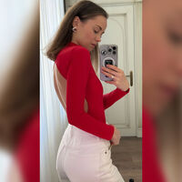 31-летняя Катерина Ковальчук стояла перед зеркалом в красном боди с длинными рукавами и вырезом на спине, которое дополнила белыми джинсами. Актриса также надела серебристую массивную серьгу и кольцо. Артистка распустила волосы и сделала макияж в естественном стиле.