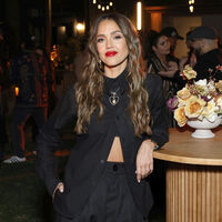 Джессика Альба вместе с Лорен Санчес и Евой Лонгорией приняла участие в мероприятии, которое она провела вместе с Ниной Гарсией и Трейси Бреннан в партнерстве с Elle и Movado в Беверли-Хиллз. 43-летняя актриса позировала перед камерами в черной расстегнутой рубашке, брюках и топе. Волосы ей уложили мягкими волнами и сделали макияж с красной помадой.