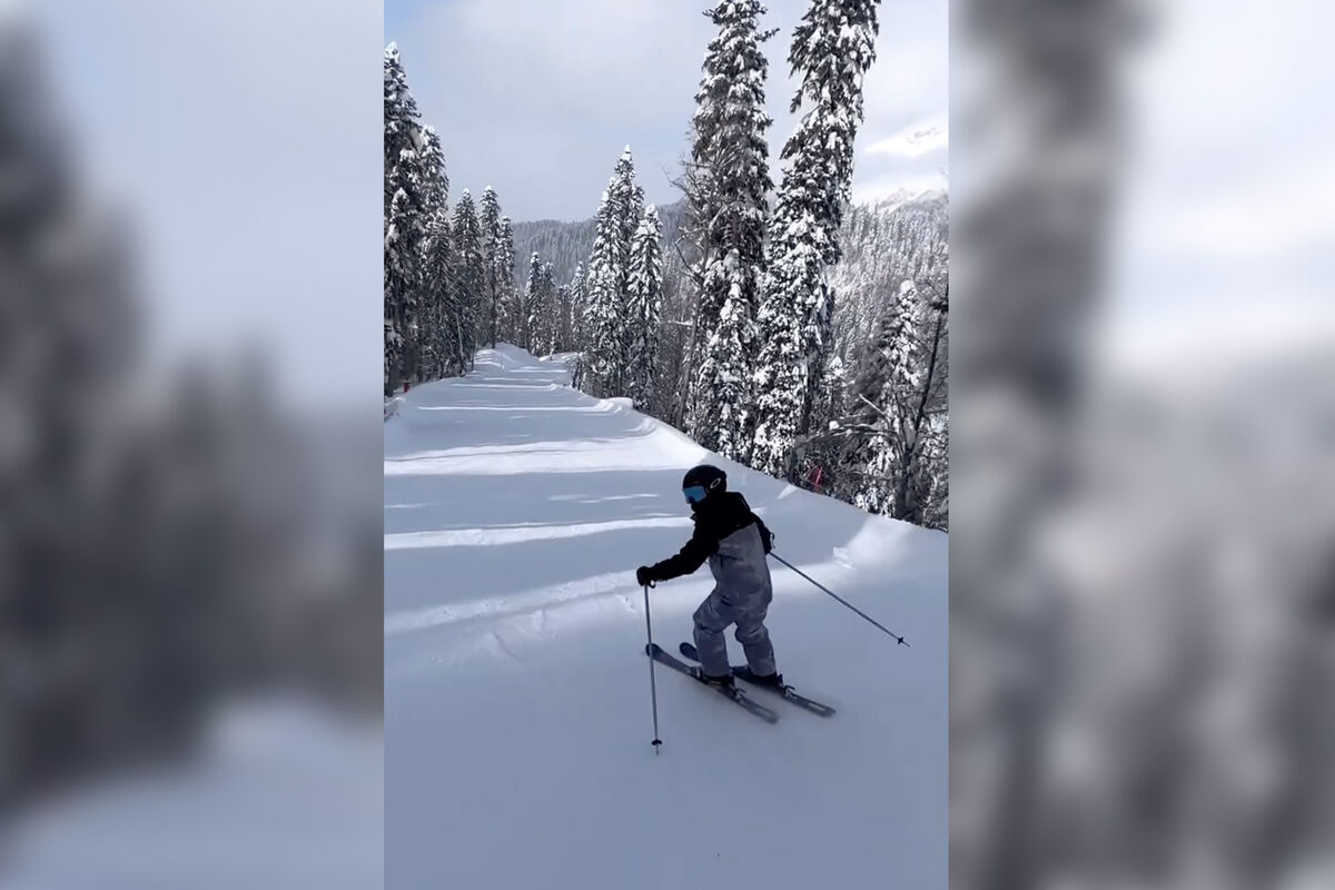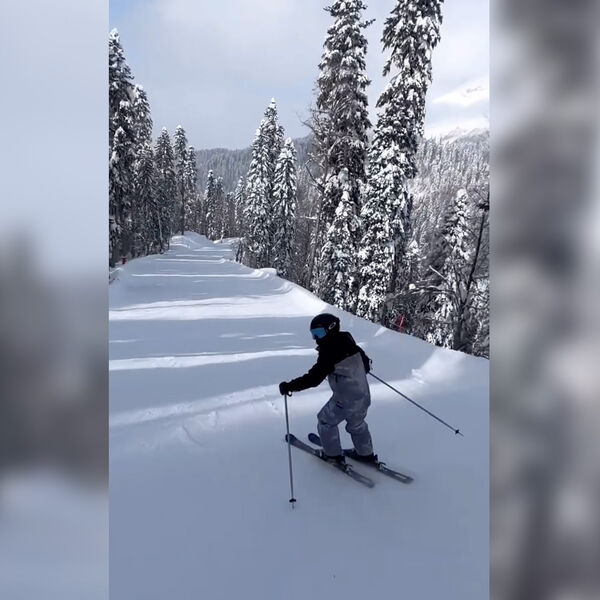 Артемий Пресняков в горнолыжной форме засняли во время спуска с горы. Сын музыканта с высокой скоростью выполнял упражнения перед матерью.