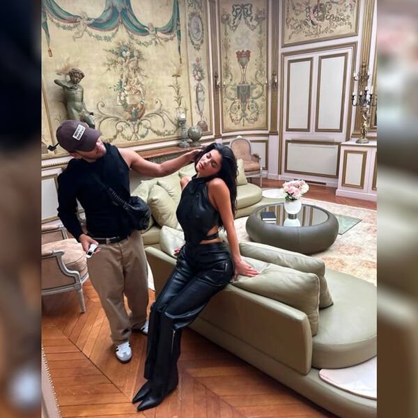 Кайли Дженнер позировала в черном облегающем топе из черной кожи и брюках. Образ дополнили сапоги с острым мысом. Волосы ей уложили мягкими локонами и сделали макияж с контурингом. Съемка прошла в интерьере особняка в итальянском стиле.