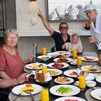 Ханна сделала селфи со своими родителями, родителями мужа и ребенком на веранде номера отеля в Дубае.