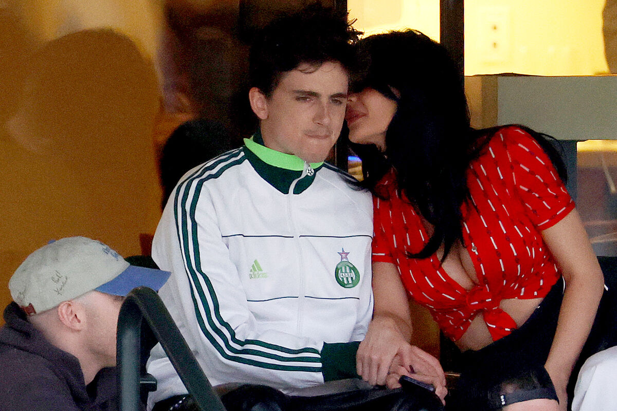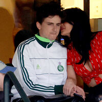 Кайли Дженнер появилась на публике в красном топе с глубоким декольте, белых брюках и черных солнцезащитных очках. Модель уложила волосы в локоны и сделала макияж в нюдовых тонах. Тимоти Шаламе засняли в белой куртке Adidas, полосатой рубашке, майке и черных кожаных штанах. Актер также надел золотую цепочку с кулоном и браслеты. Во время матча звезда реалити-шоу целовала своего бойфренда.