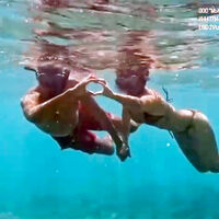 Ани Лорак и Исаак Виджраку плавали на дне Индийского океана. Певица была запечатлена в черном крошечном бикини, а ее возлюбленный — в красных плавательных шортах.