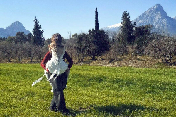 На снимке Анна Пересильд сидела на руках у Вани Дмитриенко и обнимала его. Актриса была одета в белое корсетное платье, колготки в тон и сапоги. Поп-исполнитель был запечатлен в красной водолазке, черных широких джинсах и кроссовках.