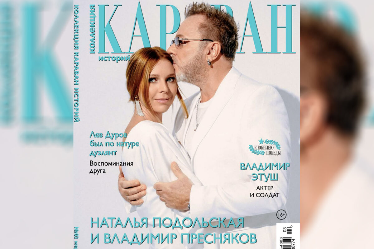 Артисты Наталья Подольская и Владимир Пресняков стали лицами нового выпуска журнала «Караван». Снимками она поделилась в Instagram (владелец компания Meta признана в России экстремистской и запрещена).