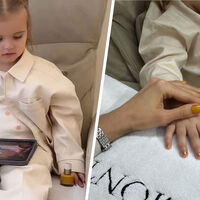 В кадре Киара сидела в маникюрном белом кресле с лаком Hermes в руках. Дочке модели тоже нанесли покрытие, однако ей, в отличие от матери, которая ограничилась чистым цветом, добавили глиттер.