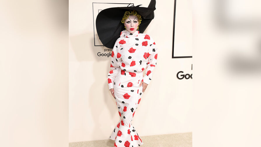 Джулия Фокс появилась на публике с бровями-треугольниками и зелеными волосами. Кожу ей покрыли белой пудрой, добавили румяна и красную помаду. Она позировала в цветочном платье и большой черной шляпе.