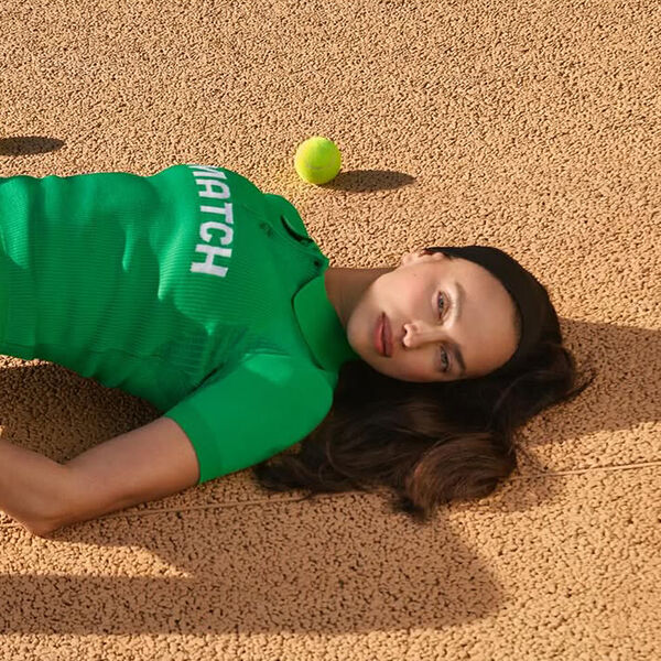 Ирина Шейк позировала в зеленой футболке и трусах, лежа на теннисном корте. Она также примерила образ с юбкой и топом. Модель сыграла партию и снялась за игрой. Волосы ей распустили и сделали легкий макияж.