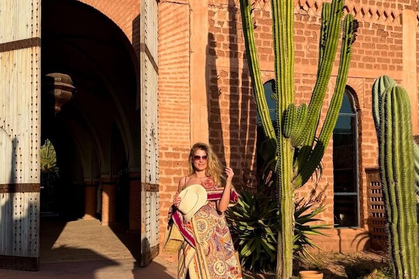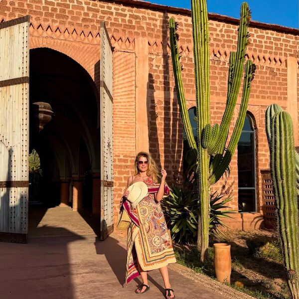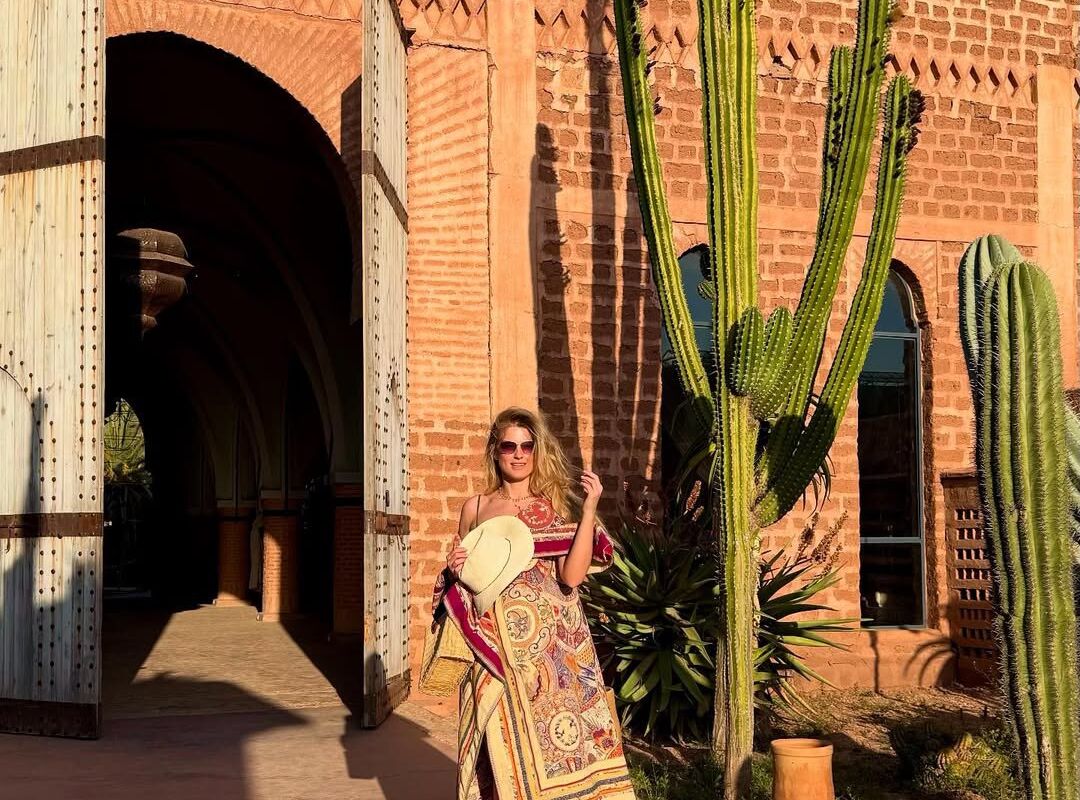 37-летняя Софья Эрнст показала кадры, которые сделала во время отдыха в Марокко. Актриса завернулась в длинный ковер с ярким принтом и надела черные сандалии. Артистка дополнила образ солнцезащитными очками, золотым ожерельем и шляпой. Знаменитость распустила волосы и отказалась от макияжа.