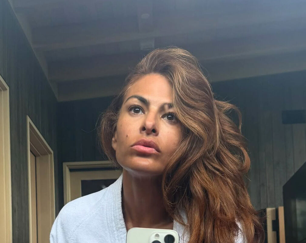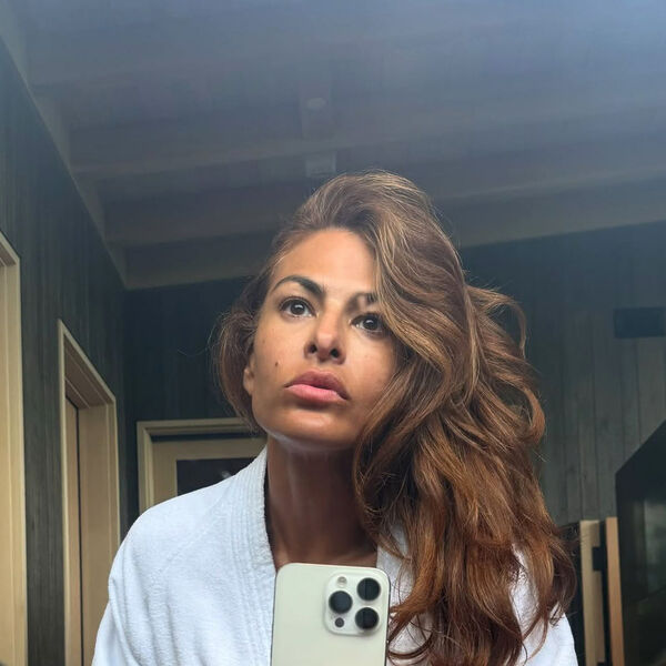 51-летняя Ева Мендес стояла перед зеркалом в белом халате с распущенными уложенными волосами. Актриса была запечатлена без макияжа.