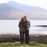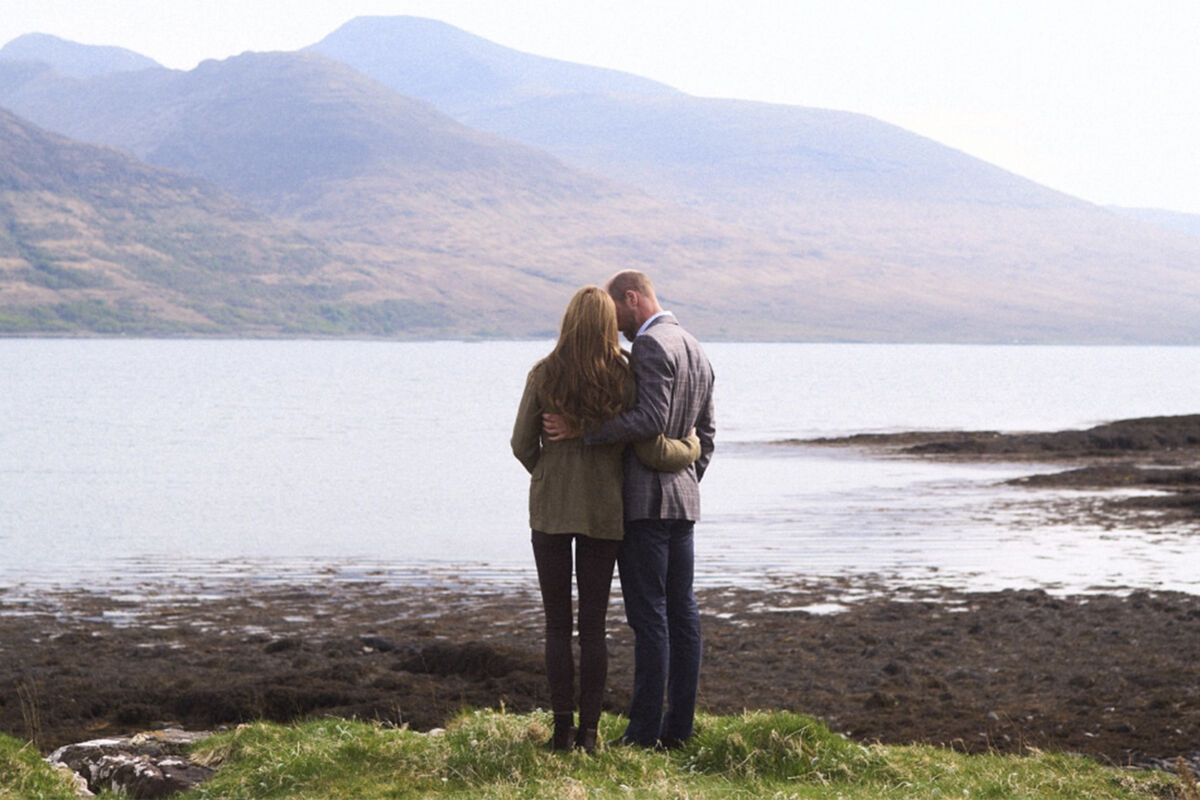 Принц Уильям и Кейт Миддлтон были запечатлены на острове Малл в Шотландии. Старшего сына короля Великобритании Карла III и его супругу засняли в объятиях у водоема. Принц Уэльский стоял в рубашке, пиджаке, синих брюках и туфлях. Кейт Миддлтон предпочла жакет, джинсы и ботинки.