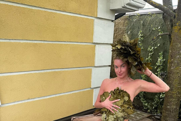 49-летняя Анастасия Волочкова предстала перед камерой в зеленых плавках без лифа бикини. Балерина прикрыла грудь вениками для бани. Бывшая прима Большого театра была запечатлена с мокрыми волосами и без косметики, сидя на купели.