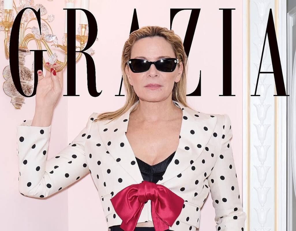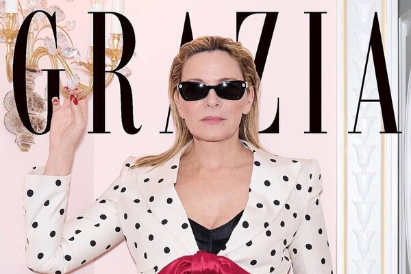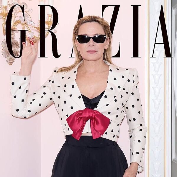 68-летняя Ким Кэтролл стала героиней нового британского выпуска журнала Grazia. На обложке актриса предстала в черном атласном бюстгальтере, укороченном белом жакете в горошек с розовым бантом, черных брюках с завышенной талией и солнцезащитных очках. Знаменитости уложили волосы назад и сделали макияж в естественном стиле.