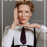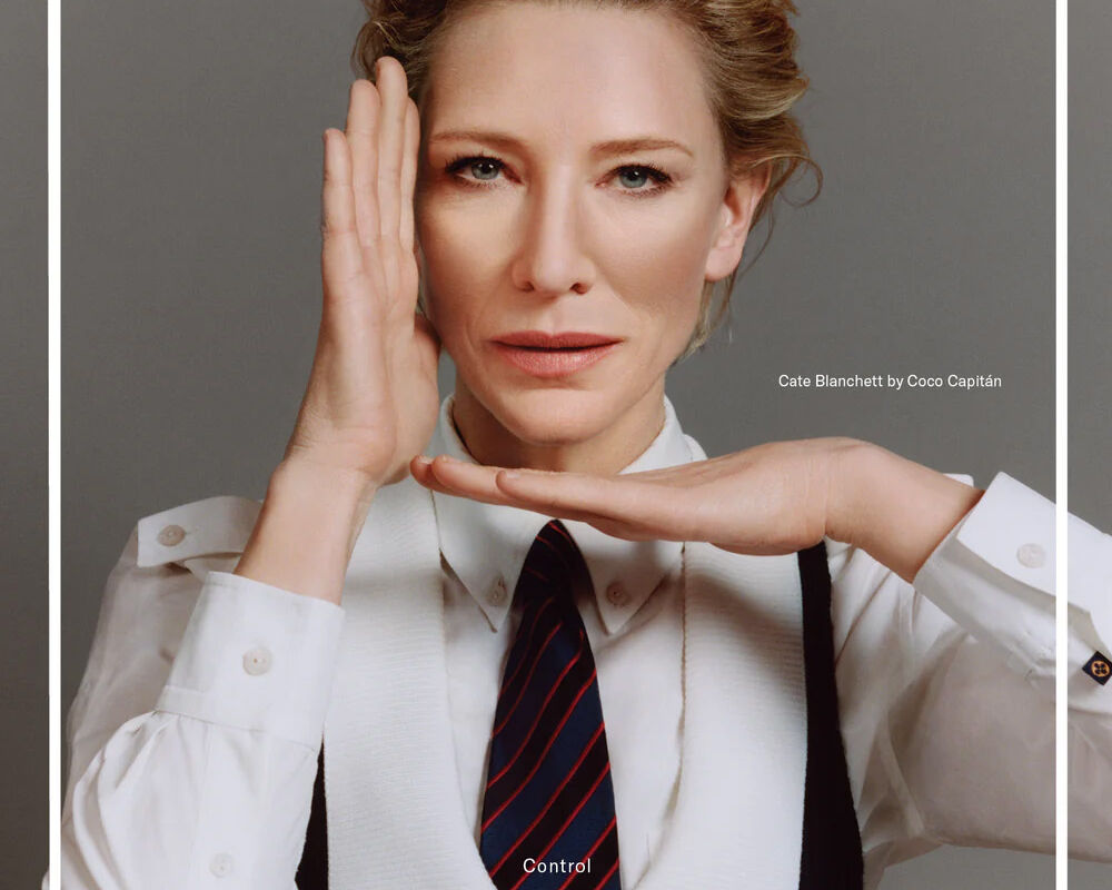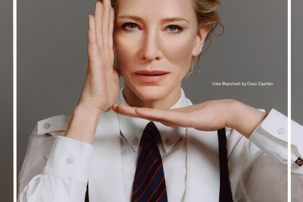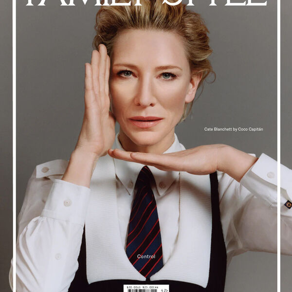55-летняя Кейт Бланшетт позировала в белой рубашке, жилете и пестром галстуке. Волосы ей уложили назад и сделали объем у корней, а также дневной макияж с акцентом на глазах и нюдовой помадой. Перед камерой она также снялась в платье-бюстье, бежевом тренче, футболке и рубашке.