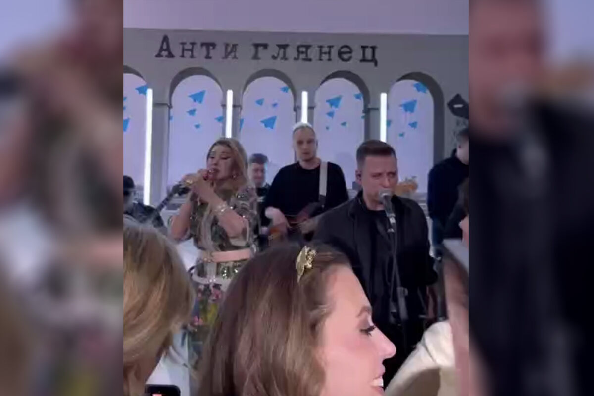 Певица Любовь Успенская вышла на сцену в платье со стразами. Об этом сообщает Telegram-канале «Светские крошки».