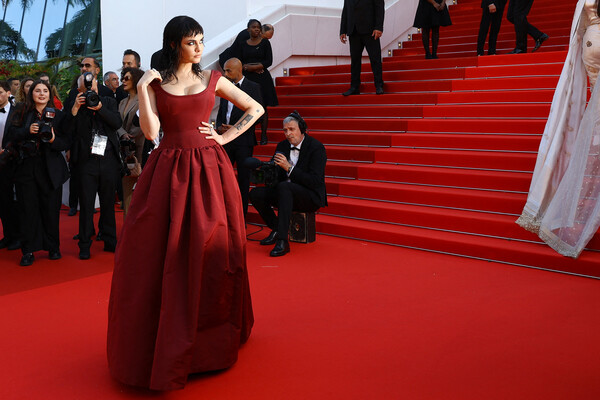 Кара Делевинь появилась на премьере фильма «История звука», которая прошла 21 мая в рамках Каннского кинофестиваля. Модель позировала перед фотографами с черными волосами и длинной челкой. Манекенщице сделали прическу с эффектом мокрых волос и макияж с черной подводкой и коричневой помадой. Звезда подиумов предстала на красной дорожке в алом макси-платье, дополнив его каффами и кольцами с бриллиантами.