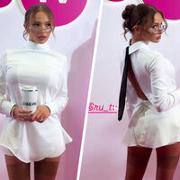 23-летняя Валя Карнавал пришла на премию телеканала RU.TV, которая прошла 21 мая в Live Arena. Блогерша позировала перед фотографами в белой расстегнутой рубашке, которую надела задом наперед. Певица дополнила образ черным галстуком, экстремально короткой юбкой, телесными чулками, прозрачными очками и браслетами. Знаменитости собрали волосы в пучок с прядями у лица и сделали макияж с черными стрелками и розовыми губами.