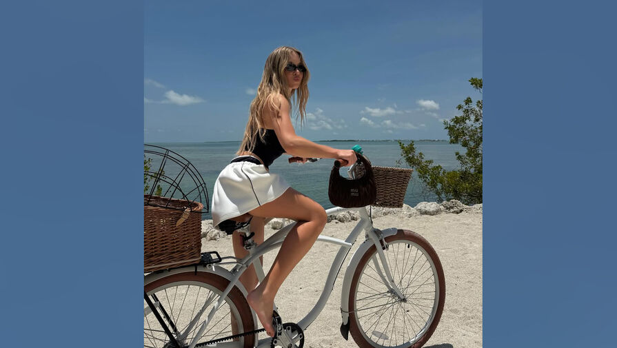 27-летняя Сидни Суини предстала перед камерой в черном топе и белой короткой юбке. Актриса добавила к образу солнцезащитные очки и сумку Miu Miu. Артистка позировала с распущенными волосами и макияжем в естественном стиле. Знаменитость сидела на велосипеде на пляже.