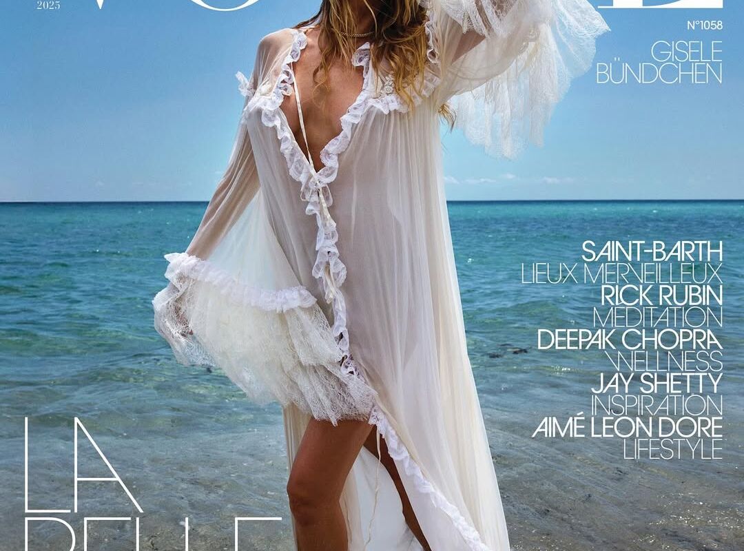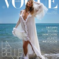 44-летняя Жизель Бюндхен стала героиней нового выпуска французского журнала Vogue. Супермодель предстала на обложке в белом абсолютно прозрачном макси-платье с глубоким декольте и разрезом, которое было украшено кружевом. При этом манекенщица не стала надевать белье. Звезда дополнила образ золотым массивным ожерельем. Жизель Бюндхен сделали небрежные локоны и макияж в естественном стиле. Она позировала, стоя в океане.