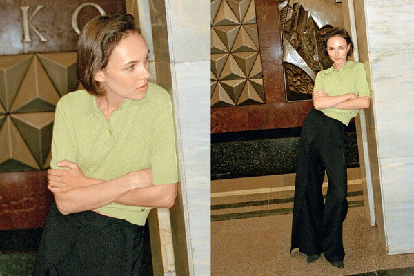 Милославская в трикотажном поло и широких брюках снялась в метро для «Москвички»