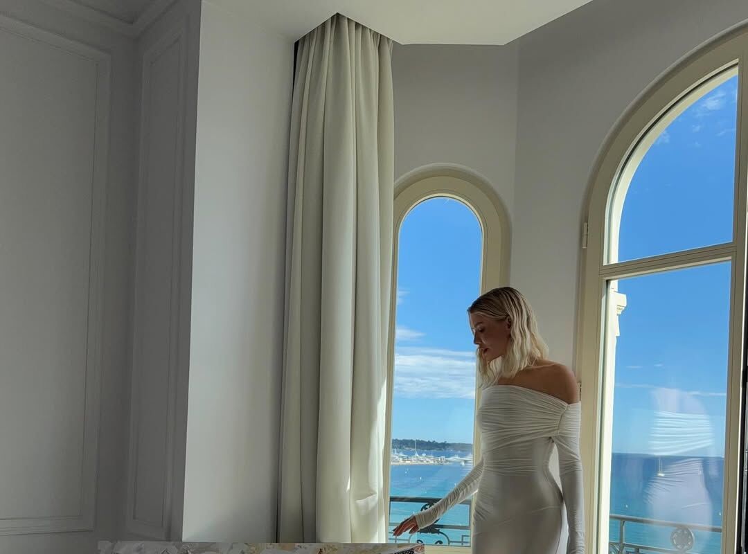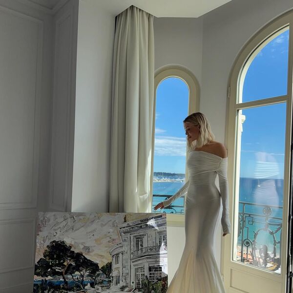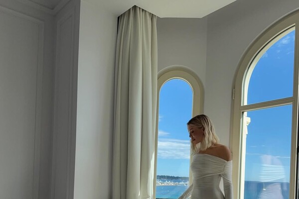 Елена Перминова позировала в белом длинном платье с глубоким декольте, отказавшись от бюстгальтера. Волосы она распустила и сделала легкий макияж. Фото были сделаны в отеле с панорамным видом на море в Каннах.