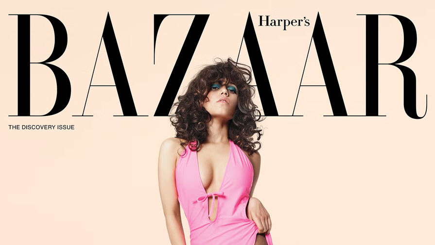 22-летняя Дженна Ортега стала героиней нового выпуска журнала Harper's Bazaar. На обложке актриса предстала в розовом макси-платье с глубоким декольте и разрезом до бедра. При этом артистка не стала надевать белье. Знаменитость добавила к образу черные колготки и серые туфли на каблуках. Дженне Ортеги уложили волосы в локоны и сделали макияж с бирюзовыми тенями и румянами.
