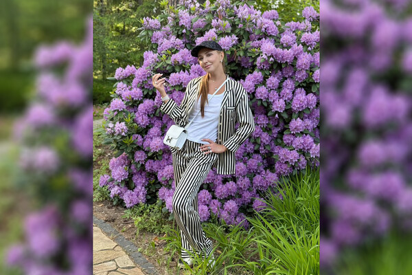 Татьяна Навка позировала в шелковом черно-белом костюме и белой майке. Образ дополнила сумка Hermes, бейсболка в стразах, кольцо с бриллиантом и серьги. Волосы она собрала в низкий хвост и сделала легкий макияж.