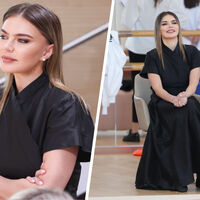 42-летняя Алина Кабаева посетила второй этап «Кубка сильнейших» в своей академии «Небесная грация». Спортсменка была запечатлена в черном макси-платье с коротким рукавом, которое дополнила жемчужными серьгами и кольцом. Гимнастка позировала с распущенными волосами и макияжем с угольно-черными стрелками, контурингом, румянами и нюдовой матовой помадой.