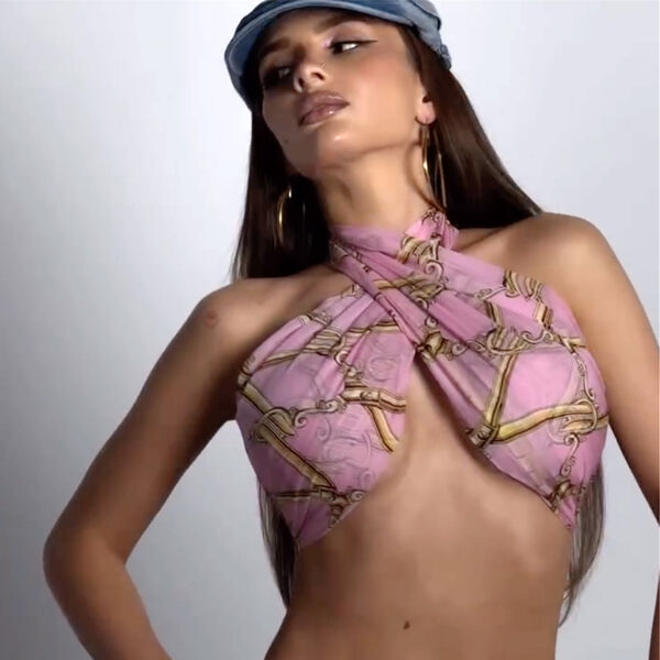 23-летняя Валя Карнавал предстала перед камерой в розовом крошечном топе с рисунком, который сочетала с джинсовой мини-юбкой и козырьком из денима со стразами. Блогерша добавила к образу массивные золотые серьги-кольца и пояс. Певица позировала с распущенными волосами. Знаменитости сделали макияж с угольно-черными стрелками и темно-розовым блеском для губ.