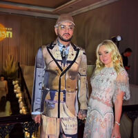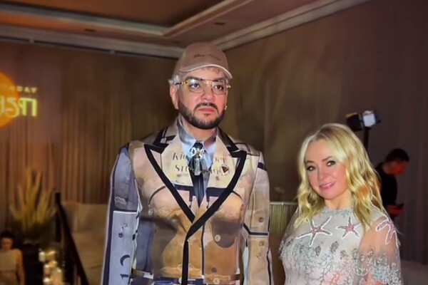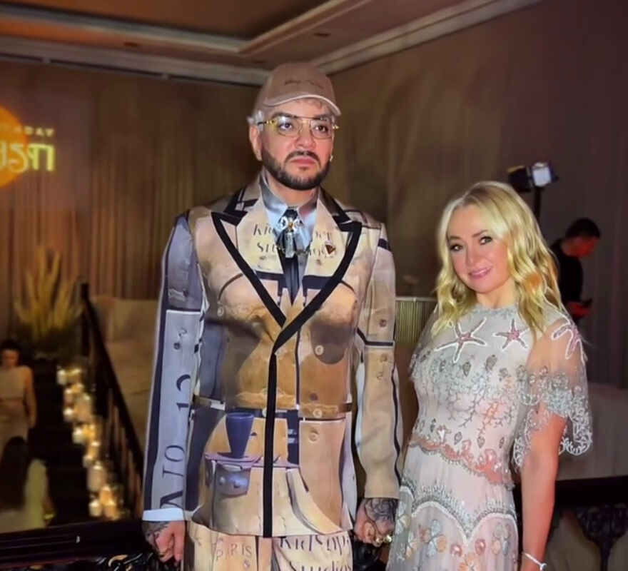 50-летняя Рудковская позировала в кремовом платье с морскими звездами и прозрачными рукавами. В кадре она позировала вместе с Филиппом Киркоровым в пестром костюме. Артисты посетили ужин по случаю дня рождения певицы Анны Асти.