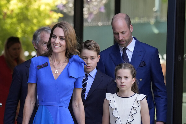 Королевская семья посетила финал мужского турнира, который прошел 13 июля в Великобритании. Принцесса Уэльская вышла на публику в синем струящемся платье с декольте и нюдовых туфлях на каблуках. Кейт Миддлтон добавила к образу массивное золотое колье, серьги, часы и кольцо. Принц Уильям выбрал синий пиджак, белую рубашку с галстуком, брюки и коричневые лоферы.