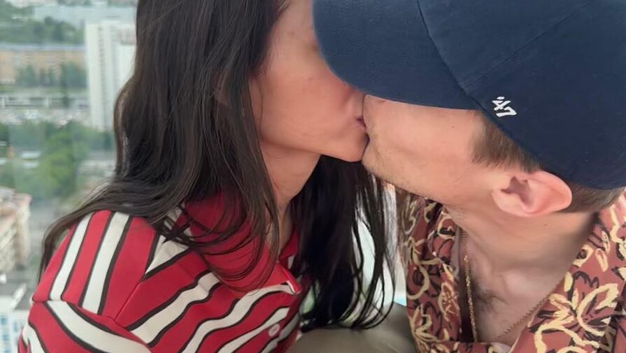 Иван Янковский и Диана Пожарская целовались на террасе с видом на город. Актер был одет в коричневую рубашку с коротким рукавом и принтом, серо-бежевые брюки и синюю кепку. Артистка предпочла красное поло в полоску и белый низ.